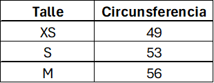Tabla de medidas de referencia. Las medidas son aproximadas y pueden tener un margen de diferencia del 10% con la tabla. Las medidas están expresadas en centímetros.